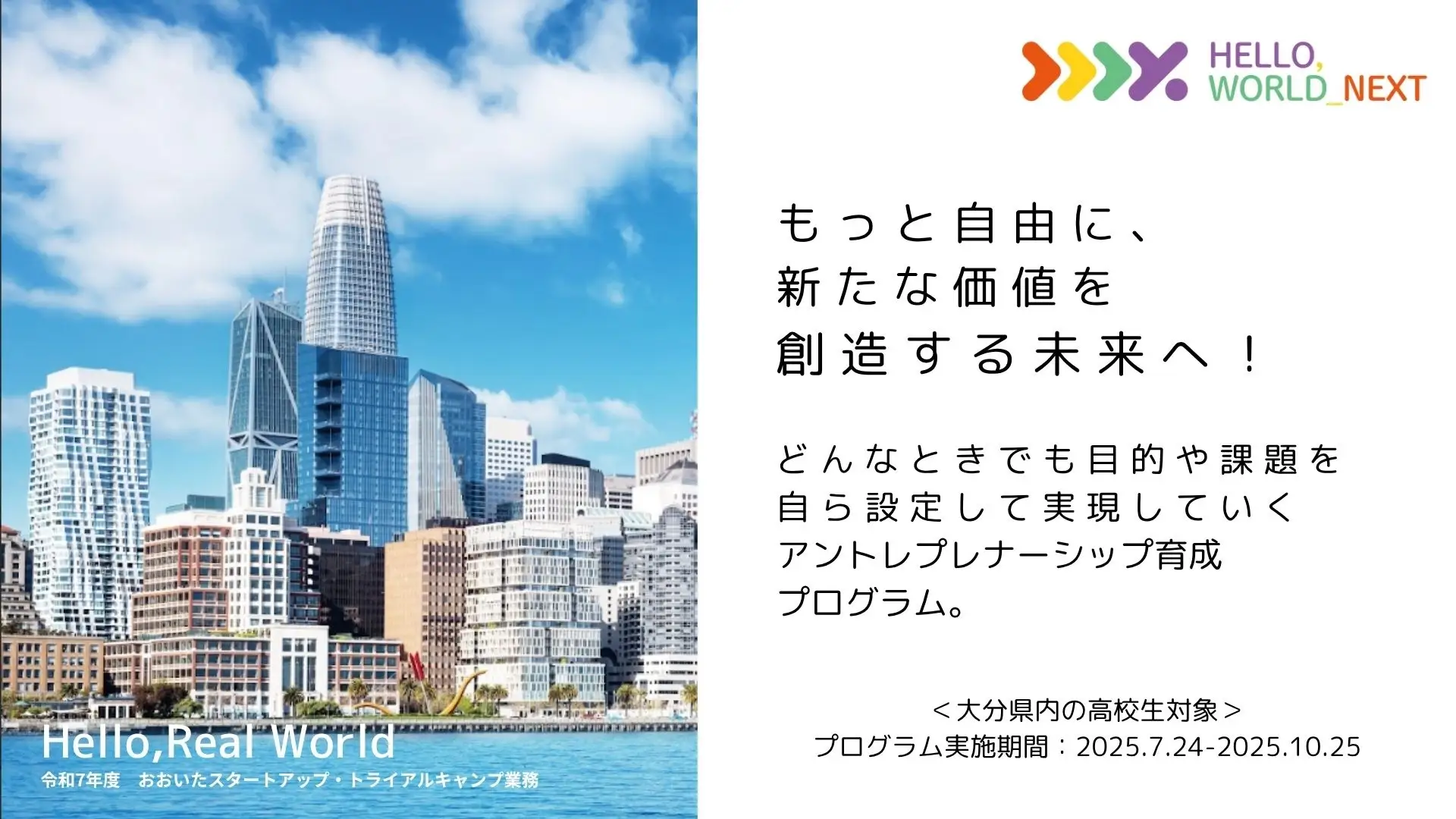 同プログラムは、大分県教育庁高校教育課の委託を受けて、同社が企画運営を行う実践型プログラム。高校生が自分の想いと向き合い、問いを立て、行動に移す「アントレプレナーシップ」(起業家精神)を実践的に学ぶ内容で、アイデアを形にするプロセスを通じて、「自分の言葉で語る力」「他者と協働する力」「社会とつながる感覚」を育む。