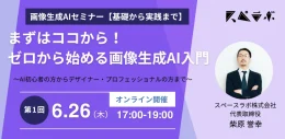 第1回は、「まずはココから!ゼロから始める画像生成AI入門【ビジュアル制作会社が解説】」として、スペースラボのビジュアル制作で培った知識や技術を生かした新規事業として、画像生成AIの基礎から、ビジネスにおける具体的な活用術までを分かりやすく解説する。