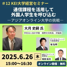 デジタル・ナレッジは、6月26日開催予定の第12回KEI大学経営セミナー「通信課程を活用して外国人学生を呼び込む―アジアオンライン大学の挑戦」に共催ホストとして登壇する。