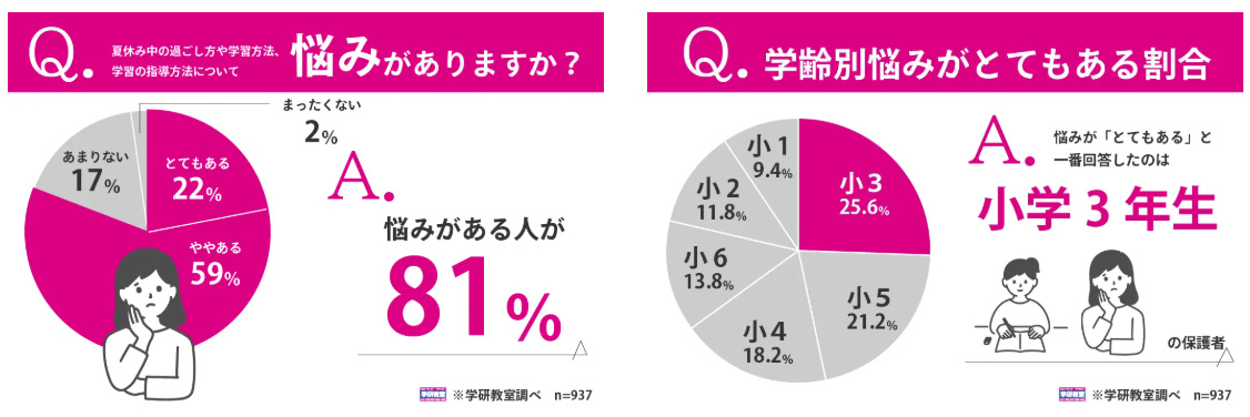 小学生の保護者の8割が「夏休み中の子どもの過ごし方・学習方法」に悩む=学研調べ=