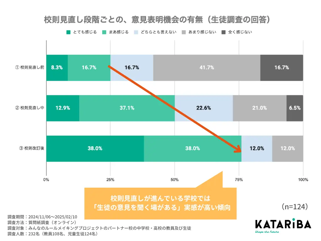 3. 「校則見直し」、進む学校と進まない学校の間には「生徒の意見を聞く機会」の実感 =カタリバ調べ=