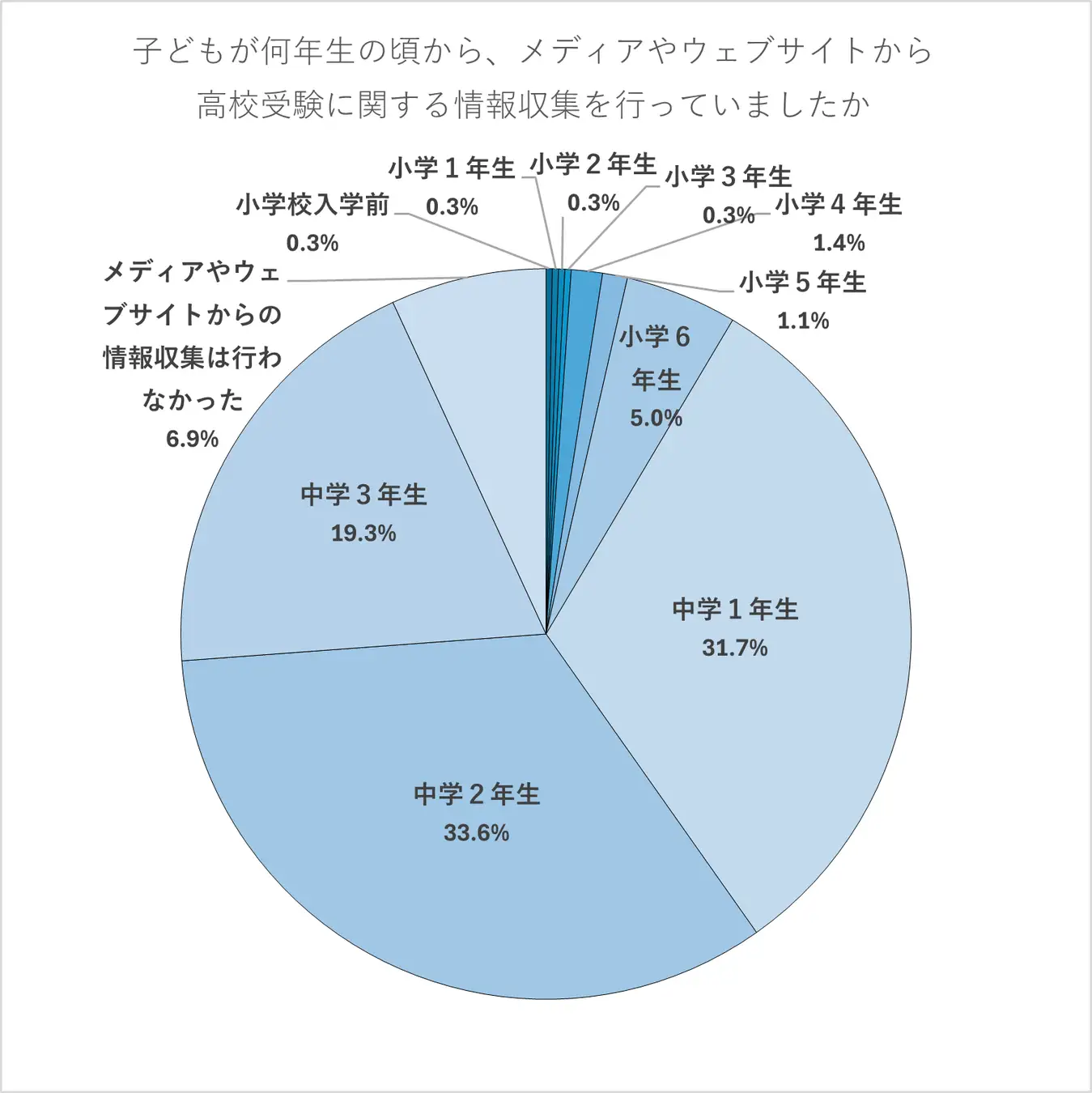 この結果から、子どもが高校受験を経験した保護者の8割が、「高校のホームページ」と「塾」から、高校受験の情報を収集していたことが分かった。