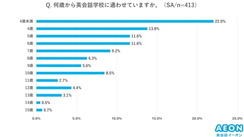 子どもを英会話教室に通わせている保護者は4割以上、うち4歳未満から通学が最多=イーオン調べ=