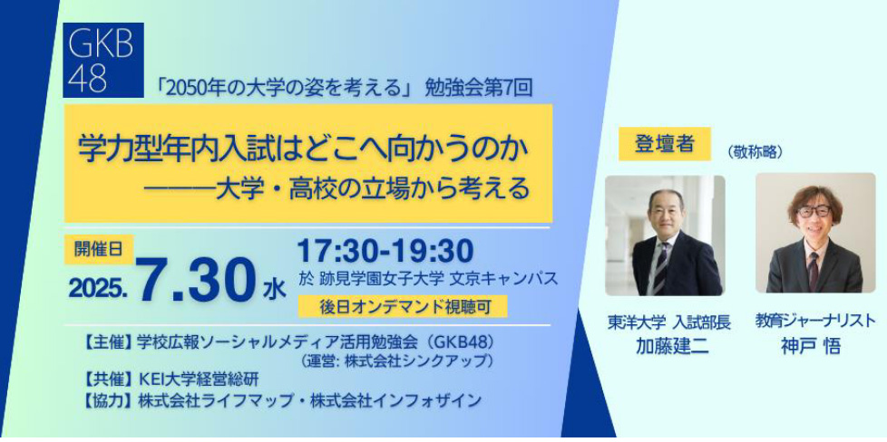 GKB48、教職員向けセミナー「学力型年内入試はどこへ向かうのか」30日開催