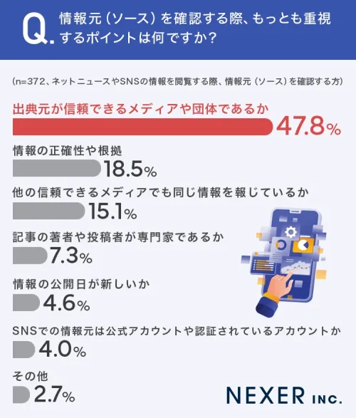 情報のソース 44.9%が「確認しない」情報元が分からぬままシェアすることも =NEXER調べ=