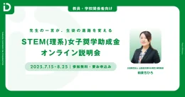 山田進太郎D&I財団は、教員・学校関係者を対象に、同財団が運営する、抽選制・返済不要の「STEM(理系)女子奨学助成金」のオンライン説明会を、7月15日~8月25日にかけて合計5回、無料開催する。