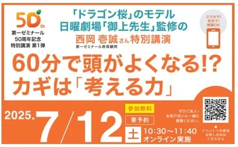ウィザスは、第一ゼミナール創業50周年を記念して、漫画・ドラマ「ドラゴン桜」のモデルで日曜劇場「御上先生」監修の西岡壱誠氏を迎えた特別講演イベントを12日にオンラインで開催する。