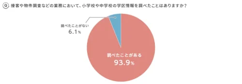 また、接客や物件調査などの不動産業務において、学区情報を「調べたことがある」と回答した不動産会社も93.9%とほとんどに上った。