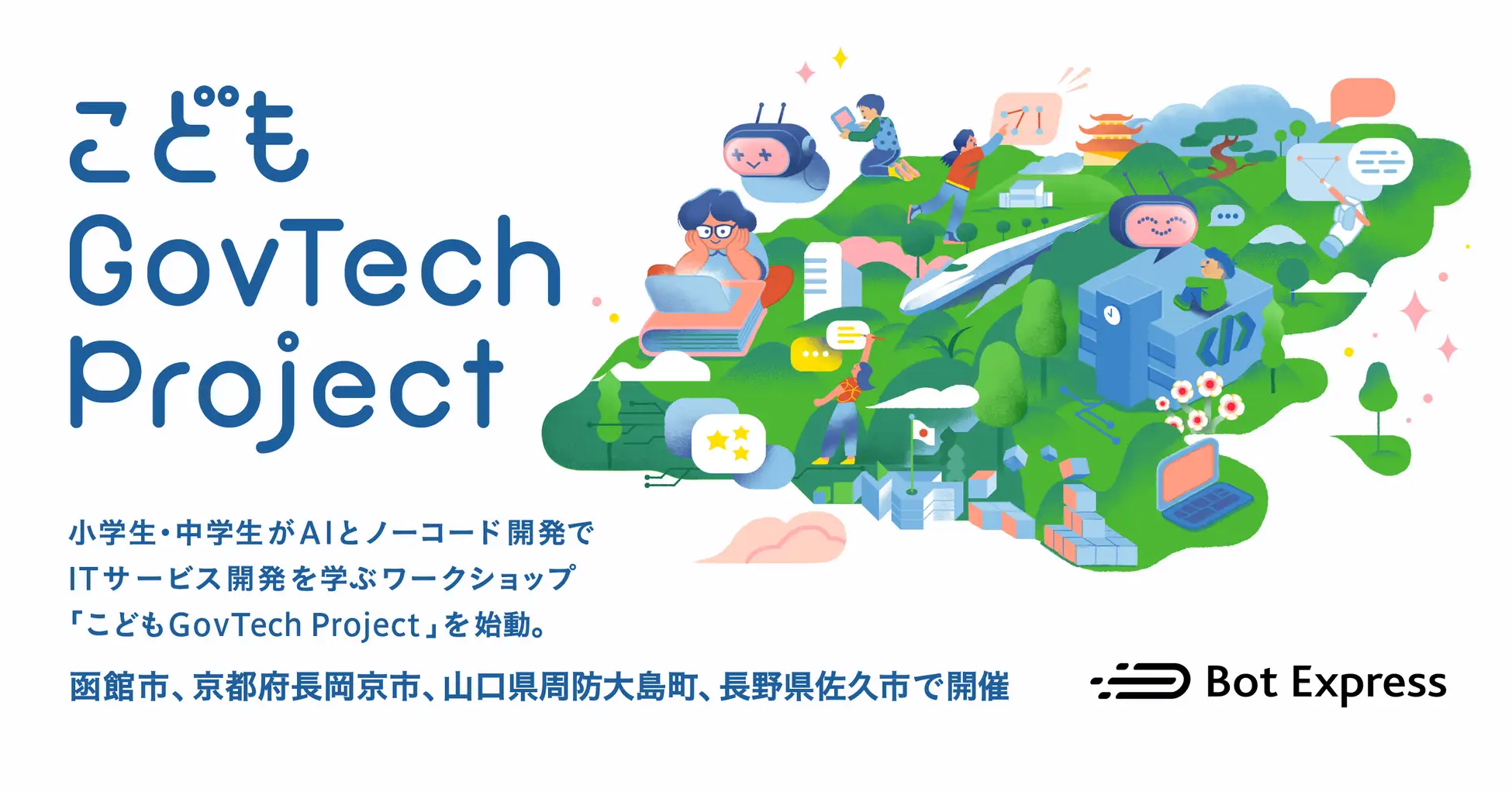 Bot Expressは14日、小中学生がAIとノーコードによってITサービス開発を学ぶワークショップ「こどもGovTech Project」をスタートした。