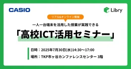 カシオ計算機とLibryは、高等学校関係者対象「高校ICT活用セミナー」を7月30日に、リアル&オンラインで開催する。