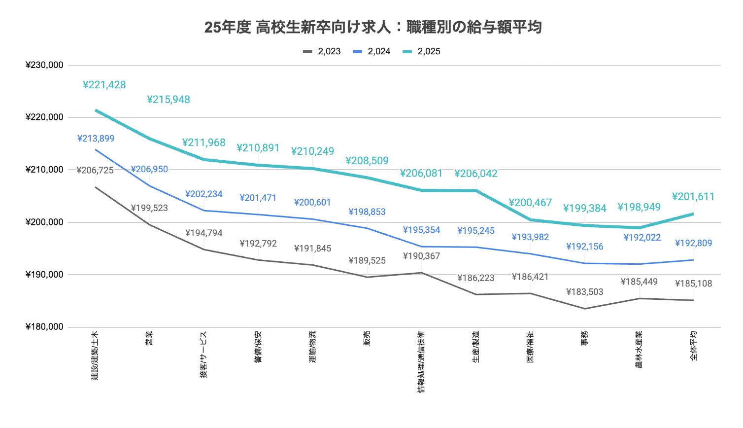 高卒求人の月額給与、26卒は前年比+8802円で初めて20万円を突破=ハンディ調べ=