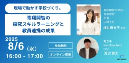 NextTeachersは、Webセミナー「現場で動かす学校づくり。青翔開智の探究スキルラーニングと教員連携の成果」を8月6日に開催する。