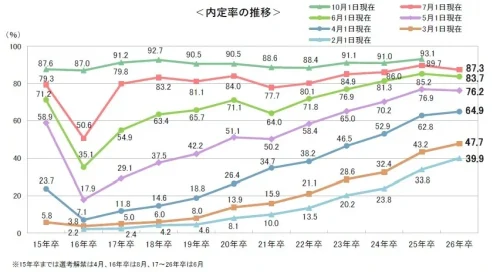 26年卒学生の7月1日時点の内定率は87.3% =キャリタス調べ=