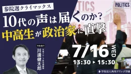 N高等学校・S高等学校・R高等学校(N高グループ)、N中等部の部活動「N高グループ政治部」は、ニコニコ生放送の公開討論番組「【参院選クライマックス】10代の声は届くのか?中高生が政治家に直撃」に7月16日参加する。