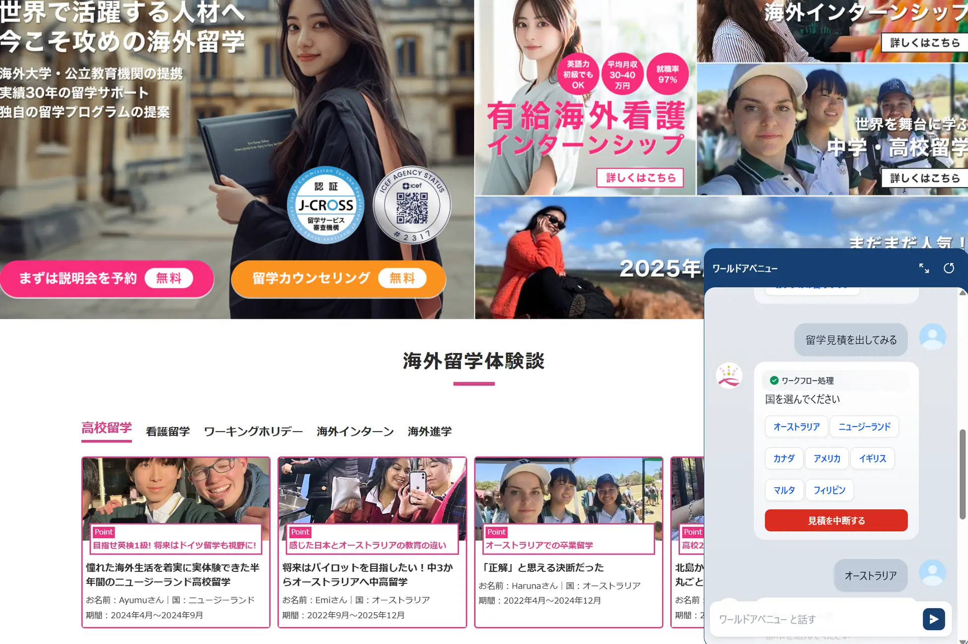 ワールドアベニュー、「留学見積シミュレーション」に生成AIのチャット機能を追加