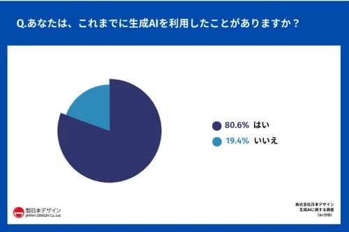 それによると、「これまでに生成AIを利用したことがあるか?」と質問したところ、80.6%が「はい」と回答。「いいえ」は19.4%だった。