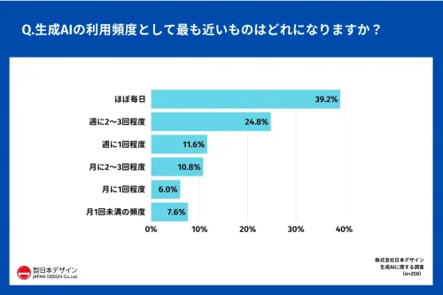 生成AI、39.2%が「ほぼ毎日活用している」と回答 =日本デザイン調べ=