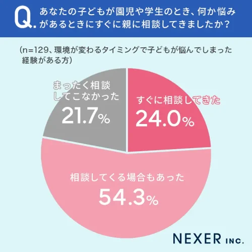 環境変化で悩んだ子どもを持つ親の21.7%「子どもがまったく相談してこなかった」=NEXER&青山ラジュボークリニック調べ=