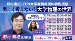 ZEN⼤学、野村泰紀客員教授の特別授業「難しく考えない!⼤学物理の世界」全6回OL無料公開