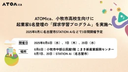 ATOMicaは22日、愛知県小牧市と連携し、高校生を対象に起業マインドを育む「探求学習プログラム」(小牧市市制70周年記念事業)を8月6日、7日、20日の3日間にわたり開催する。