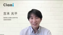 基調講演では、福岡県立武蔵台高校・進路指導課長の吉本光平氏が、「生徒の自走化を目指すための学習指導を考える」と題して講演。教育プラットフォーム「Classi」の同校での活用事例を通して、生徒が主体的に学び目標達成へと向かう力をどのように育むのか、その具体的な方法を紹介した。