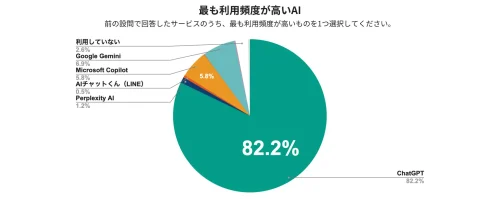 利用している生成AIサービスの“主力”は圧倒的に「ChatGPT」だった。82.2%の学生が、「最も利用頻度が高いサービス」としてChatGPTを選択しており、2位の「Google Gemini」6.9%、3位の「Microsoft Copilot」5.8%などを大きく引き離している。