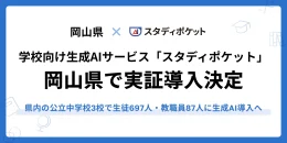 スタディポケットは28日、岡山県教育委員会が主導する「生成AIを活用した学びのサイクル実証事業業務」のもと、学校向け生成AIクラウド「スタディポケット」が県内3校の公立中学校生徒697名・教職員87名を対象に導入されたと発表した。