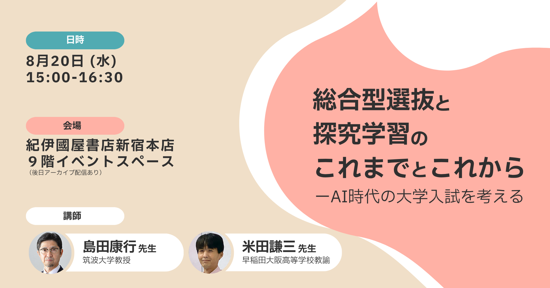 開催会場:紀伊國屋書店新宿本店9階イベントスペース 終了後、アーカイブ配信