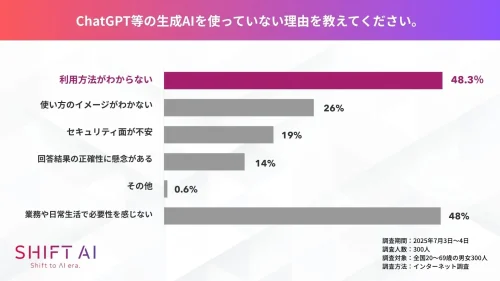 20~69歳の約7割が生成AIを使用した経験なし「利用方法がわからない」=SHIFT AI調べ=