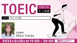 クリーク・アンド・リバー社(C&R社)は、TOEIC L&Rテストを受験予定者で700点以上のスコアをめざす人が対象のオンラインセミナー「【『TOEIC試験対策』中・上級編Vol.4『Part 4対策』」を8月20日に開催する。