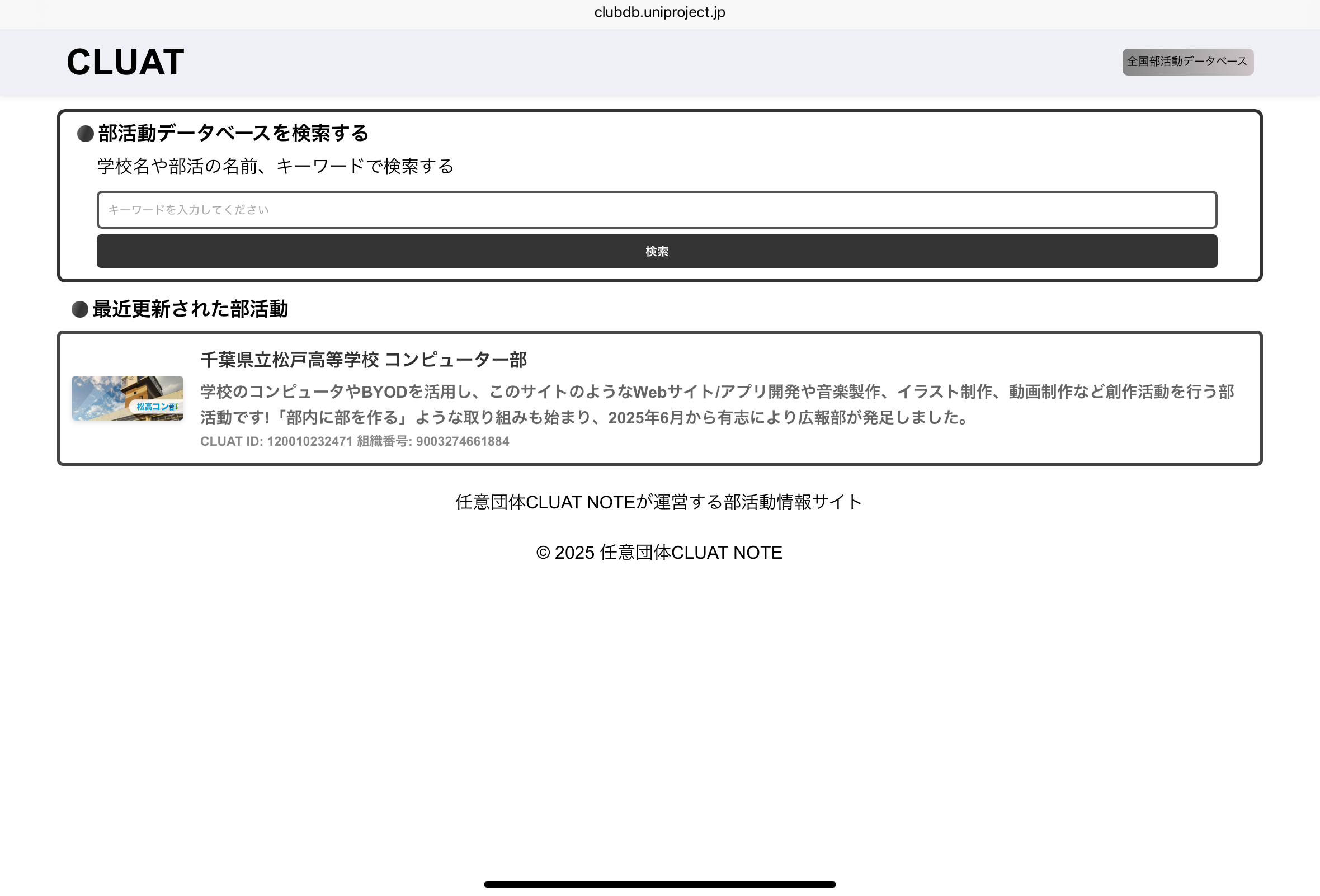 「CLUAT部活動データベース」