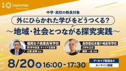 Inspire Highは、地域・社会とつながる探究学習の実践例を紹介する、中高教員向けのオンラインセミナー「外にひらかれた学びをどうつくる?〜地域・社会とつながる探究実践〜」を8月20日に無料開催する。