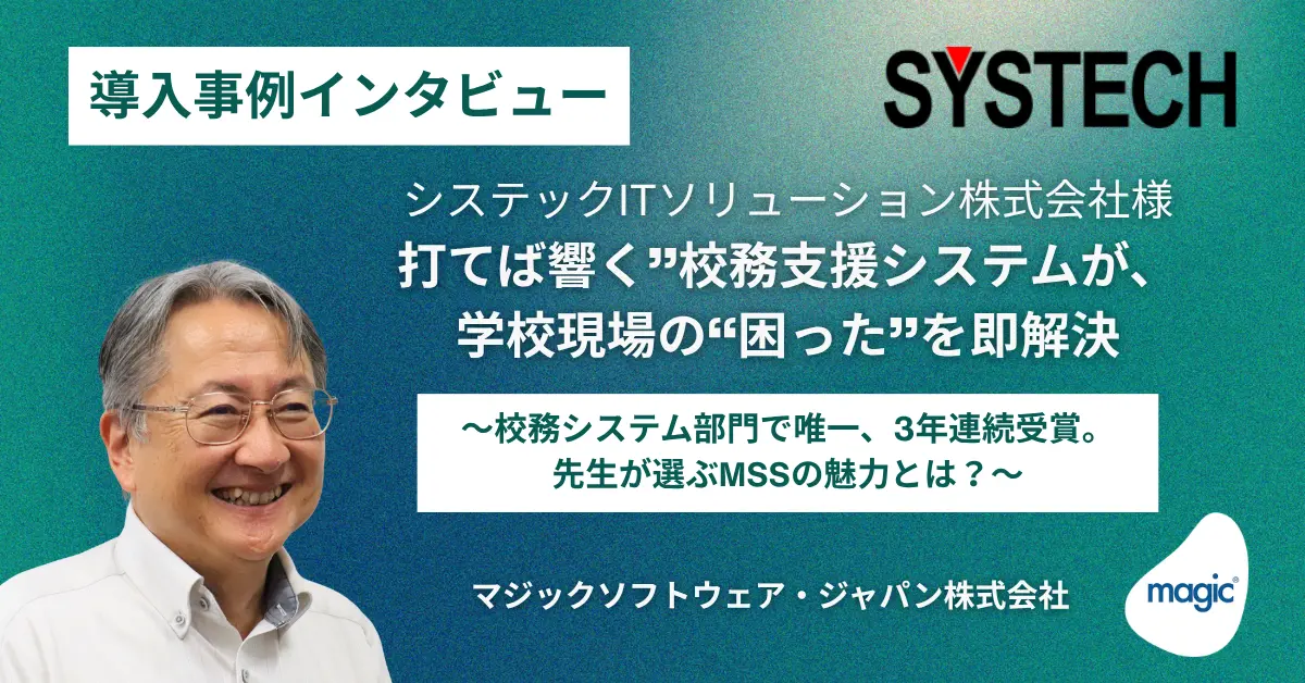 マジックソフトウェア・ジャパンは5日、同社のローコード開発プラットフォーム「Magic xpa」を活用して開発されたシステックITソリューションの校務支援システム「Major School System(MSS)」の導入事例記事を公開した。