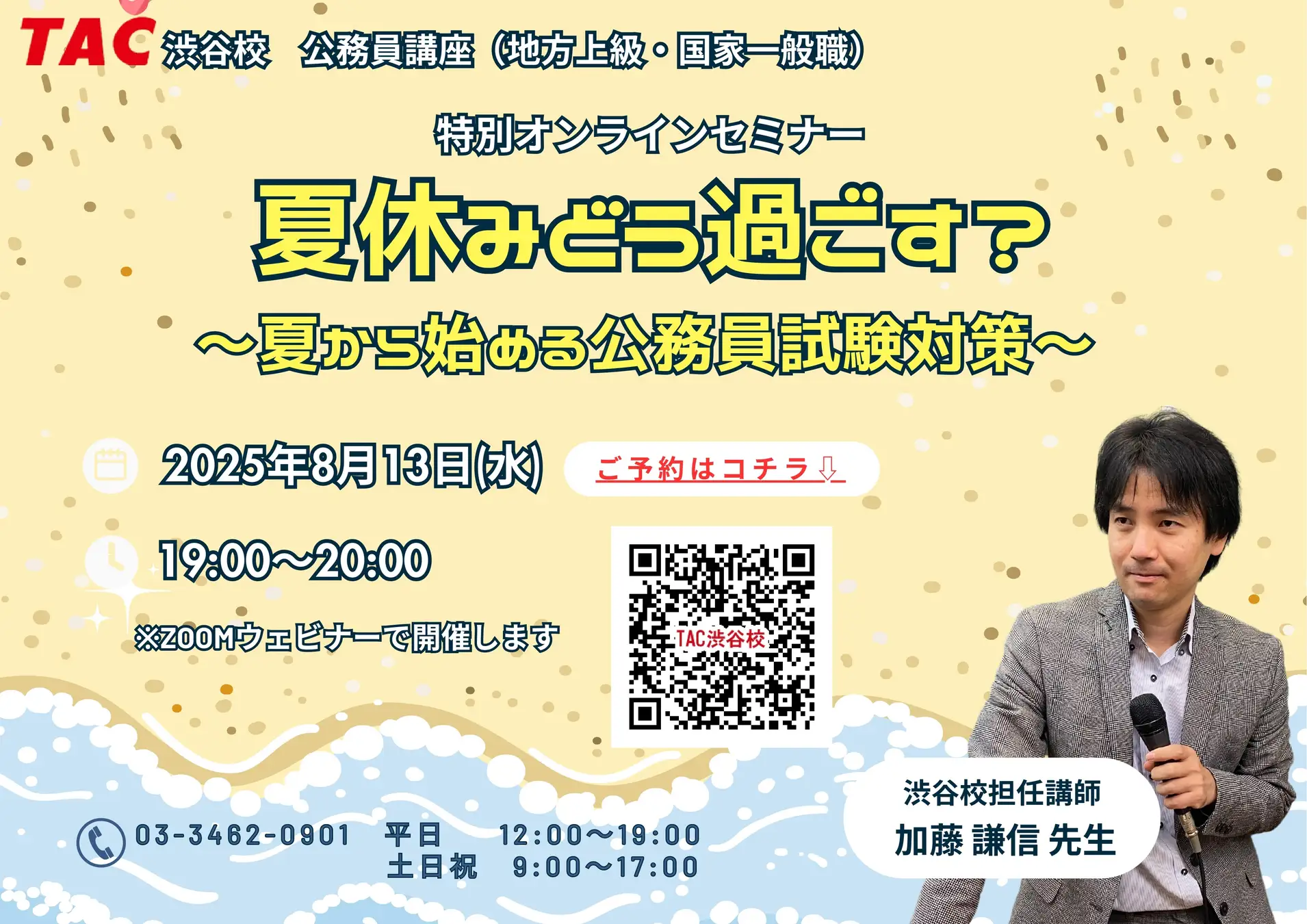 3. TAC、「夏休みどう過ごす?~夏から始める公務員試験対策~」13日開催