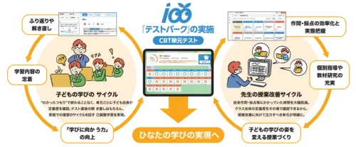 宮崎県教育委員会では、教員主導の「教える授業」から子どもが主体となる「学びたい授業」への変革のため、日常の授業にCBT単元テストを導入・活用するAI教材活用事業を推進しており、この取り組みに同社のテストパークを県内すべての小5・中2で導入することとなった。