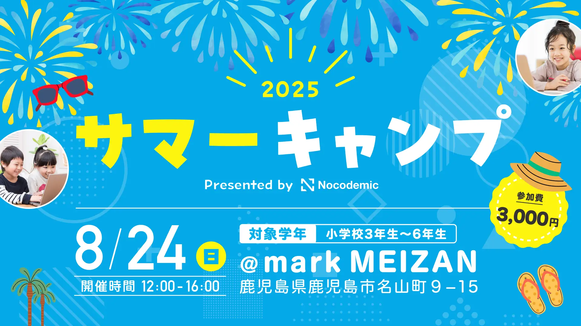 ユルリカは、小学生(3~6年生)を対象とした「サマーキャンプ Presented by nocodemic」をmark MEIZAN(鹿児島市名山町)にて8月24日に開催する。