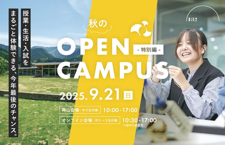 今回は、通常の体験授業・キャンパスツアー・在校生との座談会に加え、「給食体験」「入試体験」「保護者向けプログラム」など、受験準備に役立つ多彩なコンテンツを充実させた。神山会場とオンライン会場で開催する。