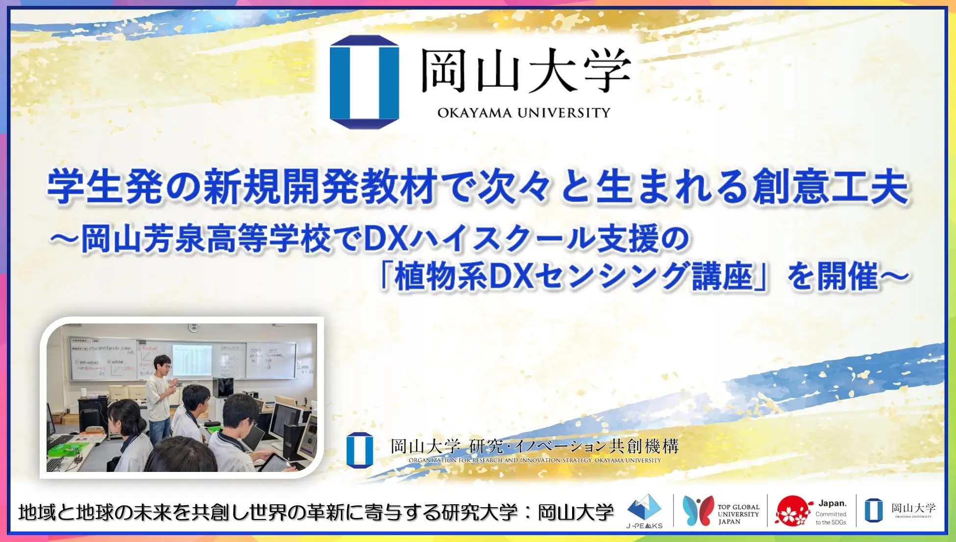岡山大学は12日、同大の学生が運営する教育支援団体「iMS」が、7月22日に、岡山県立岡山芳泉高校で、「植物系DXセンシング講座」を実施し、文系・理系あわせて12人の生徒が参加したと発表した。