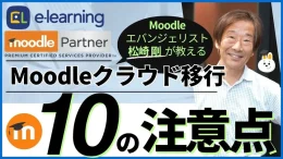 ウェビナーでは、Moodleエバンジェリストの松崎氏が登壇し、オンプレミス環境からクラウド環境へMoodleを移行する際に押さえるべき10の注意点を具体的な事例を交えながら紹介する。