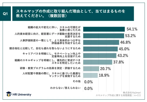 Hajimariが運営する総合研修プラットフォーム「HR University」は13日、企業のスキルマップ作成に関する実態調査の結果を発表した。