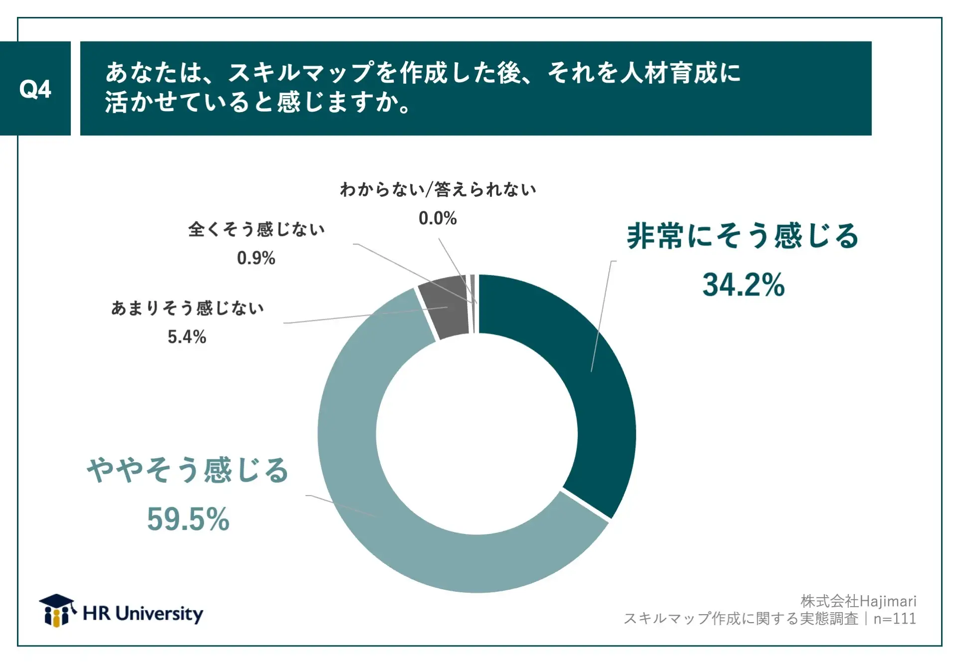 また、スキルマップ作成後のポジティブな変化を訊ねたところ、約6割が「各従業員が自分の強みや課題を理解し、自己成長の目標を立てやすくなった」と回答した。