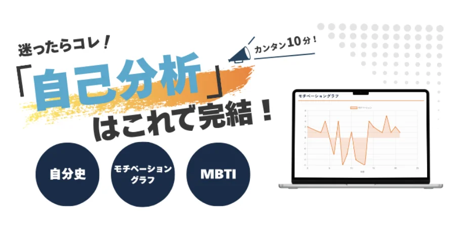 自分史・モチベーショングラフ・MBTIなど、ばらばらに行われがちだった自己分析手法を一つのフォーマットに集約し、このツール一つで自己分析を完了できる設計だという。