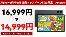 - Helio G99搭載の11インチ新型タブレット「Alphawolf PPad2」先着50名限定1万4999円