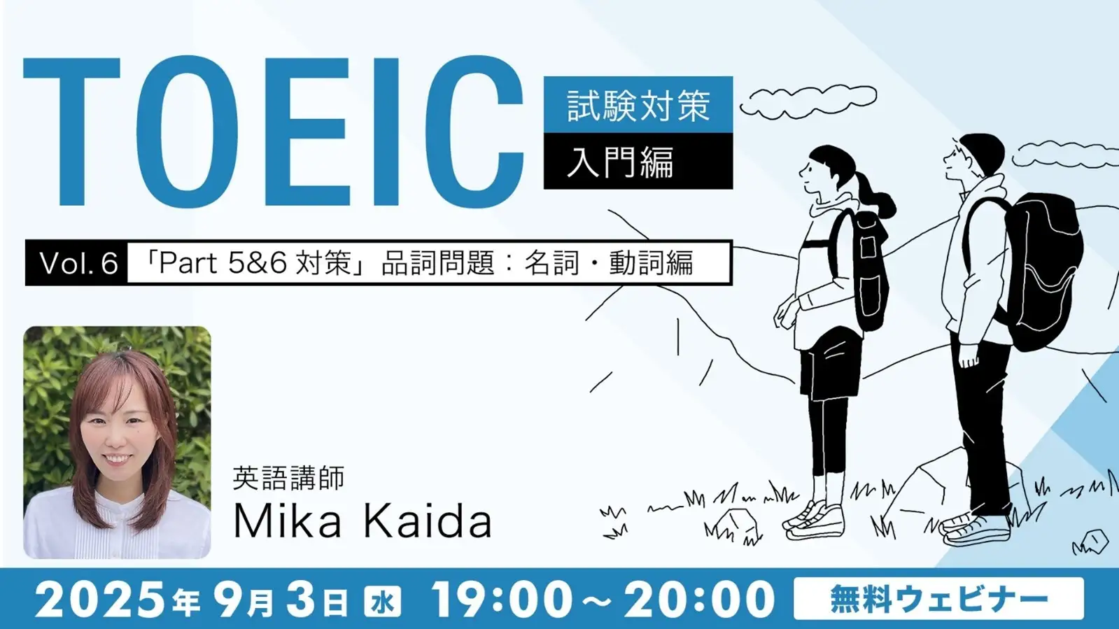 クリーク・アンド・リバー社(C&R社)は、TOEIC L&Rテスト受験予定者を対象とした無料のオンラインセミナー「TOEIC試験対策入門編Vol.6「『Part 5&6対策』品詞問題:名詞・動詞編」・Vol.7「『Part 5&6対策』品詞問題:形容詞・副詞編」を9月3日と17日に開催する。