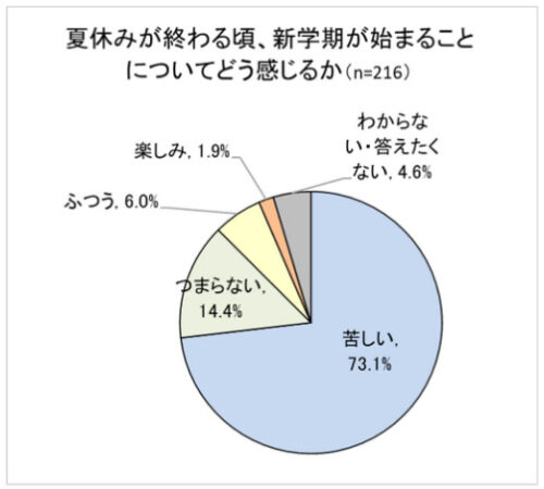 その結果、「夏休みが終わり、新学期が始まること」が「苦しい」と感じている人は73.1%。