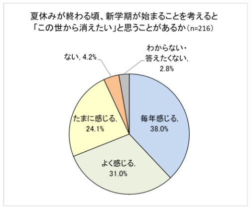 10代、夏休みが終わる頃「『この世から消えたい』と感じたことがある」93.1% =第3の家族調べ=
