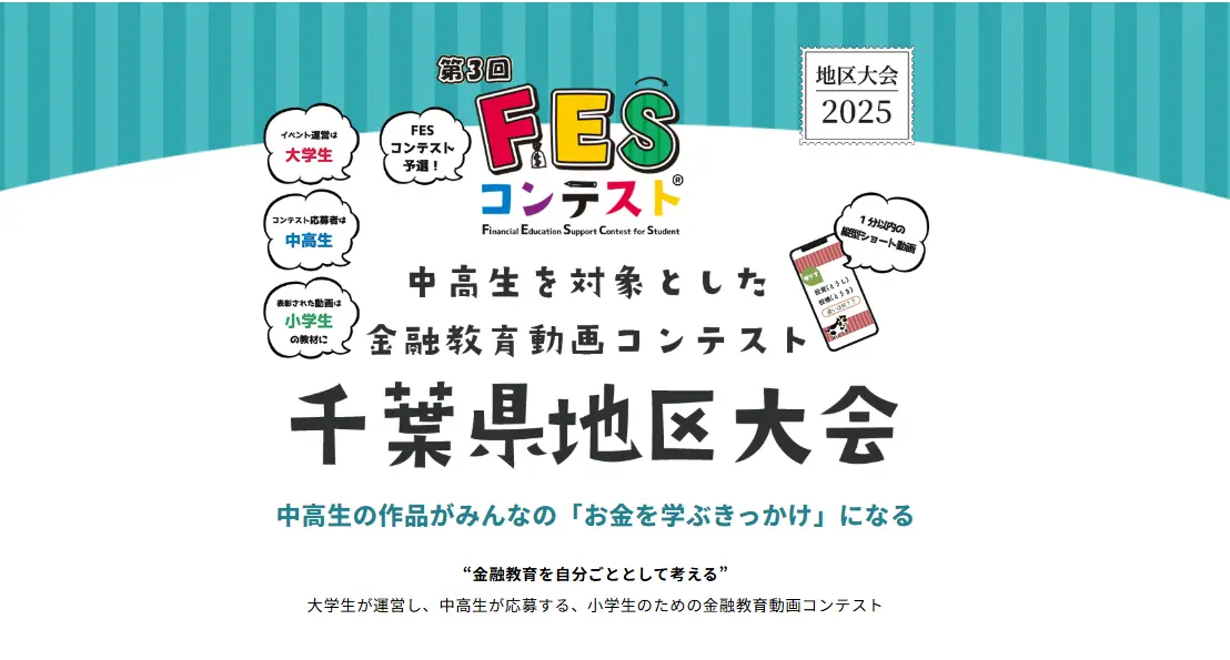 日本金融教育支援機構は、中高生による金融教育動画コンテスト「第3回FESコンテスト千葉県地区大会」を開催している。