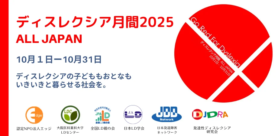 エッジ、大阪医科薬科大学LDセンター、全国LD親の会、日本LD学会、日本発達障害ネットワーク、発達性ディスレクシア研究会による、ディスレクシア月間2025実行委員会が、ホームページを開設した。各団体で10月にイベント・講座・学会開催や図書館等への働きかけ、SNSシェアを展開する。