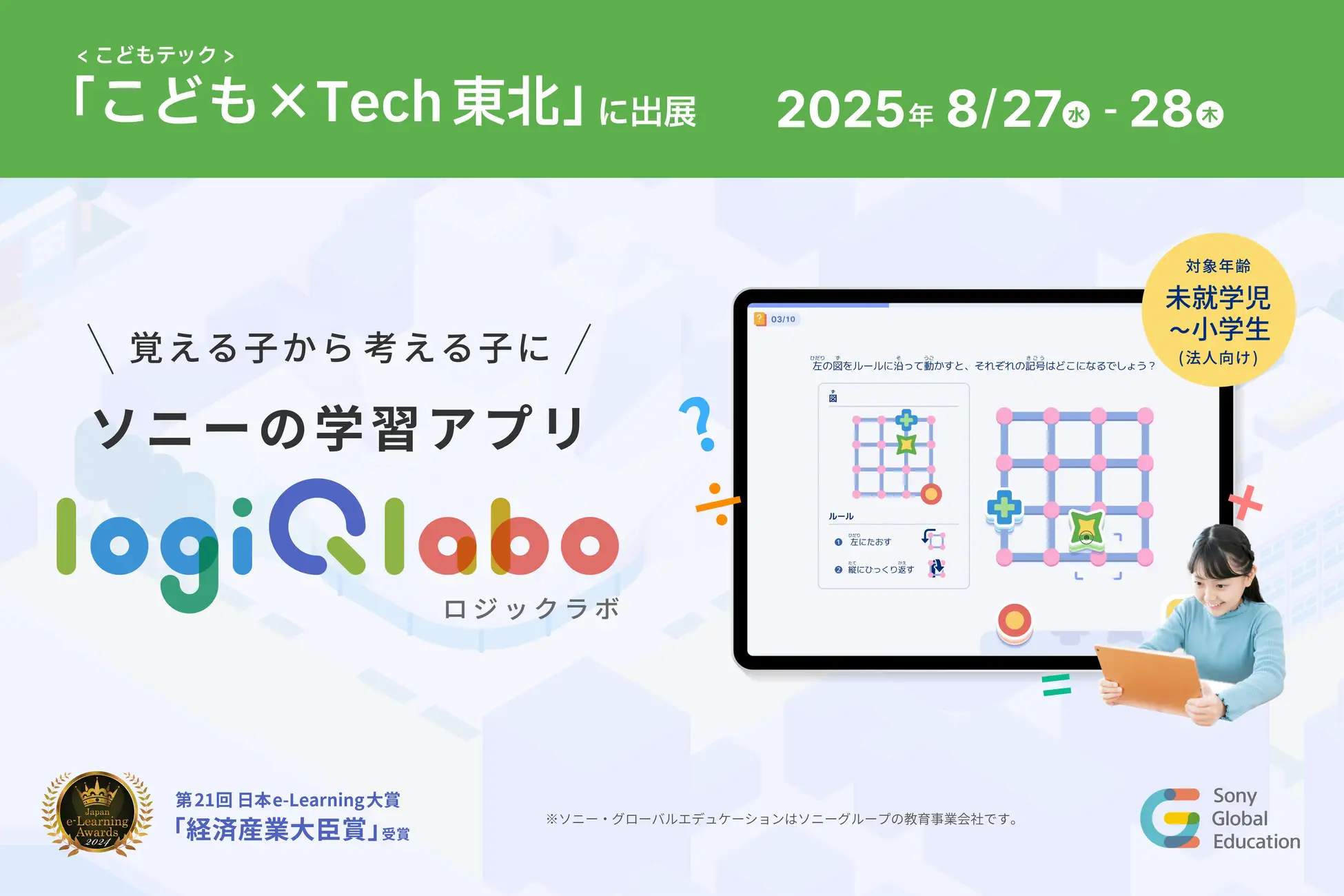 ソニー・グローバルエデュケーションは、8月27・28日に仙台市の仙台国際センターで開催される「学校」「子育て」「保育」を支援する最新技術展「こども×Tech東北」に、同社の学習アプリ「LOGIQ LABO」(ロジックラボ)を出展する。