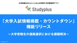 スタディプラス、学習管理アプリ「Studyplus」で「大学入試情報掲載・カウントダウン」リリース